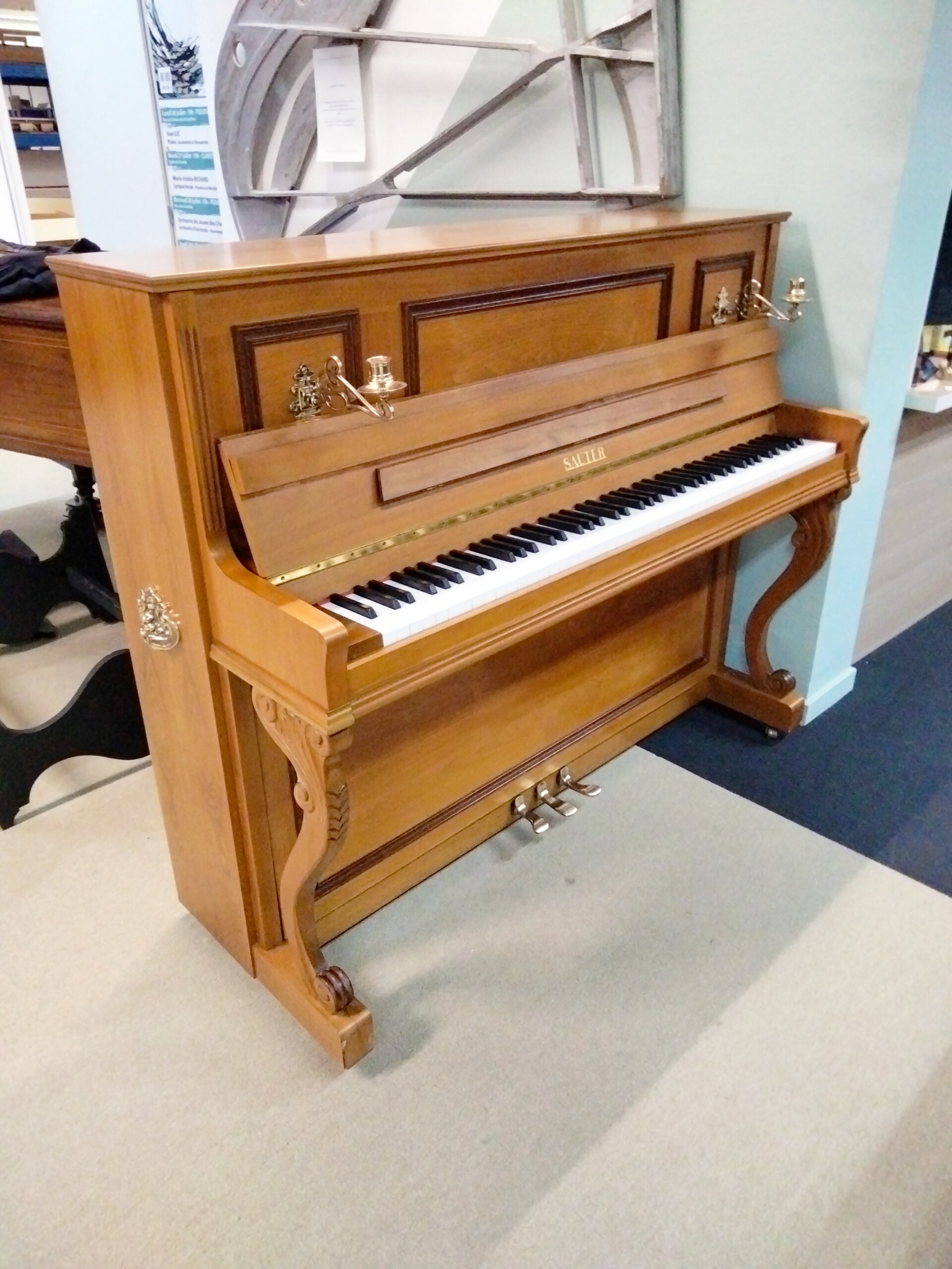 D’une hauteur de 120 cm et de 145 cm de largeur, les dimensions de l’instrument placent ce piano dans la catégorie des pianos droits professionnels de taille moyenne, adaptée à l’étude avancée et au jeu expressif.